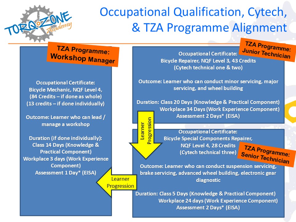 - Occupational Certificate: Bicycle Mechanic, NQF Level 4, 84 Credits (13 if done individually), SAQA ID 99694
